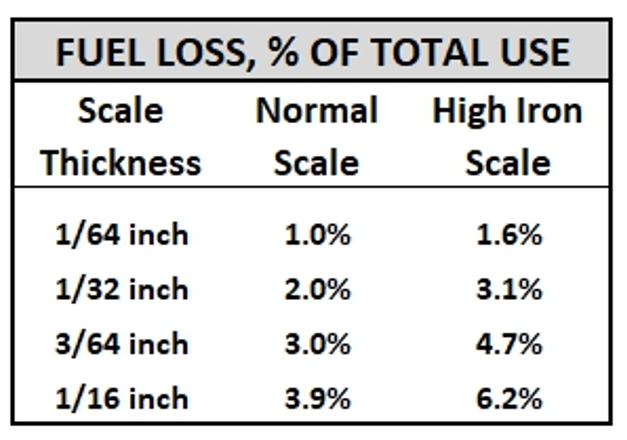 Good water quality begins with proper water chemistry, both in the feedwater and boiler water. However, power water quality can create scale buildup in boiler tubes. The associated fuel loss with this buildup is depicted in the following table: