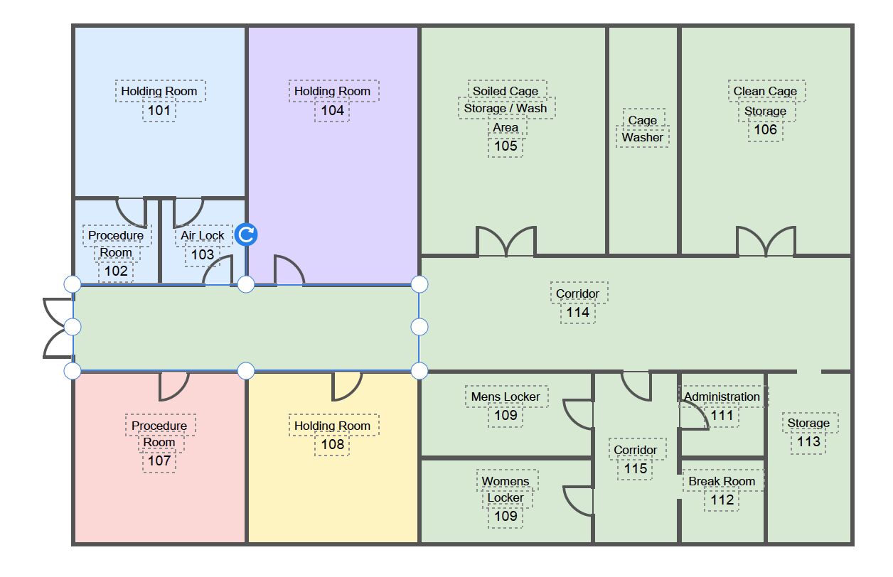 4. Prioritize functional independence of research areas. Vivarium spaces are often broken into distinct working groups or sets of areas (rooms) that are always working on the same group of experimental subjects. Systems should be designed such that a failure in one work group does not affect any other work group.