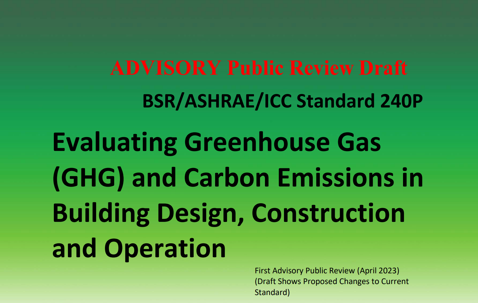 The public review also seeks input on the proposed title for the standard: Quantification of Life Cycle Greenhouse Gas Emissions of Buildings.