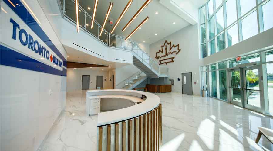 “It’s the coolest thing in the world,” says Durr, director of facilities for the team’s Florida operations. Durr joined the Blue Jays in December 2019 as the organization was in the middle of building the new complex. Construction broke ground in April 2019, and the building was completed in March 2021.