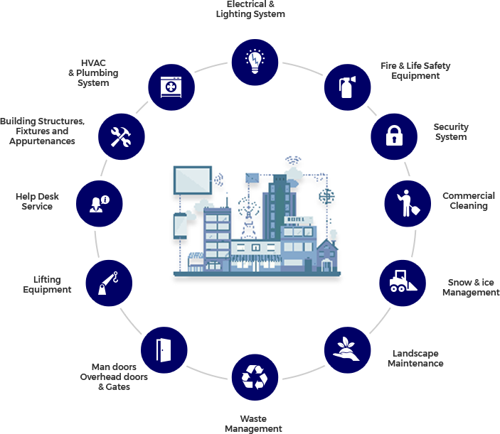 These systems are at the heart of any viable, well-oiled facilities department, from safety, health, and hygiene requirements, to HVAC, maintenance, and security systems. The sheer scale and complexity of these various facilities-related systems can be seen in the graphic below:
