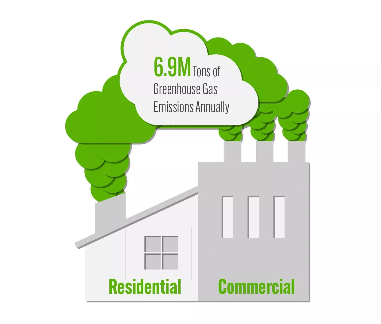 Figure 1: Residential and commercial buildings are responsible for 6.9 million tons of greenhouse gas emissions annually. Courtesy: Jordan & Skala Engineers