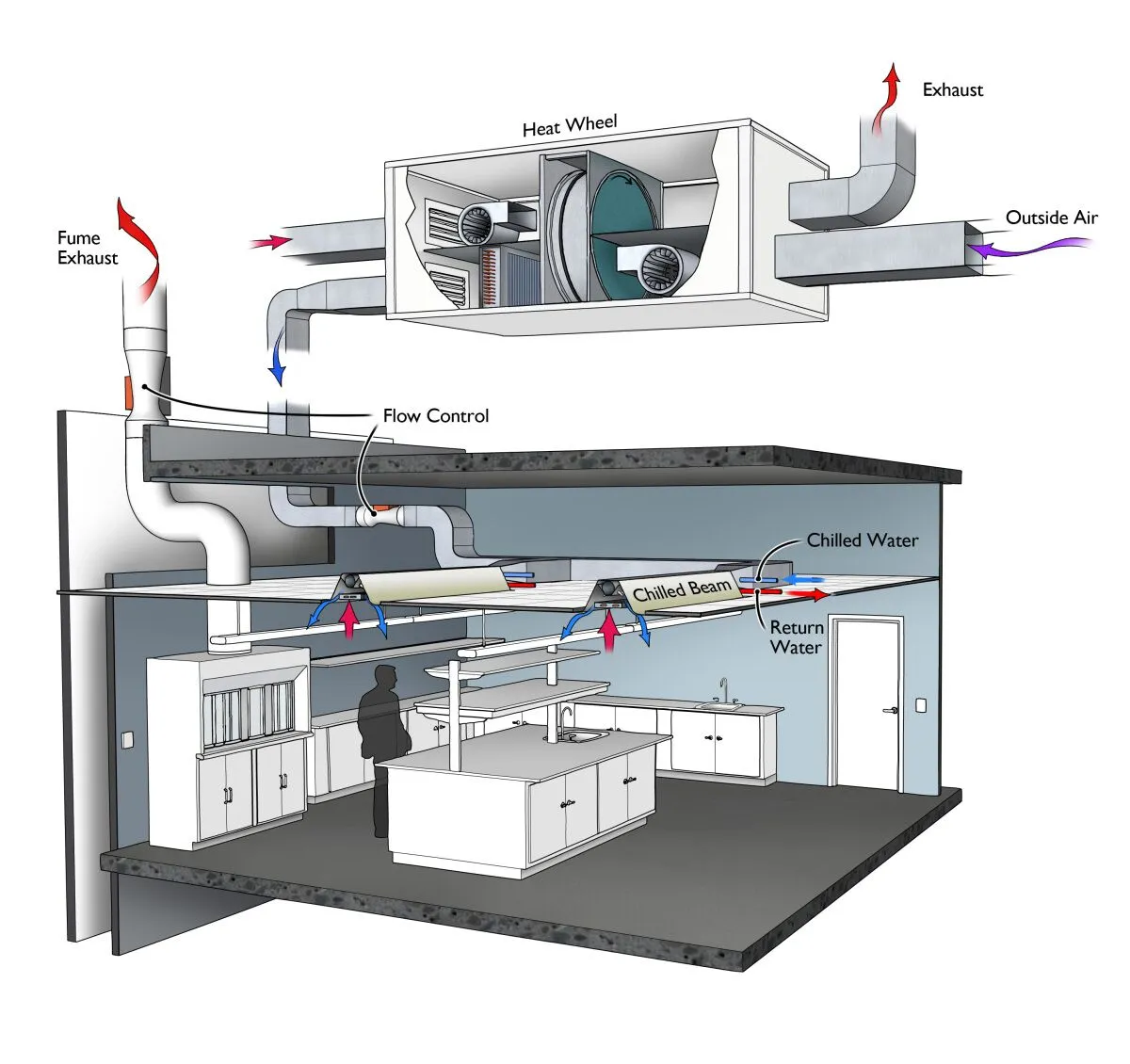 Tom Syvertsen: While the use of chilled beams for space cooling and heating is not terribly exotic or unusual, they are not frequently employed. Depending on a variety of factors, including space sensible and latent loads, ventilation requirements, required air change rates or makeup air requirements, they may or may not be the best system type to select. We are currently working on a project with very high equipment loads in labs where makeup air requirements do not dictate for most spaces.