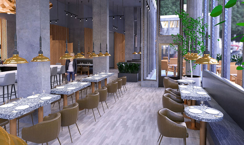 - ‘Copper restaurant/ Concept : Pizzazz’ by Noora Aziz, Yorkville University (Concord, Ont.)