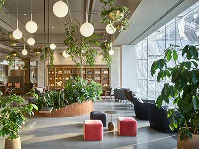 Biophilic elements can be incorporated in higher education designs in a number of ways; many of which involve the use of greenery, fire, natural light and textures to appease the occupants’ senses and promote such mental and physical benefits as decreased anxiety, lower blood pressure, fewer illness symptoms, increased social interaction, improved coping skills and enhanced attention span, among others.