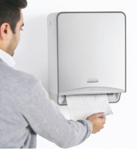 Electronic and touchless dispensing technology is also helping visitors to stay safe and hygienic and move quickly through washrooms. Smart and precise hand towel dispensers recognise partially torn sheets and then serve up a new sheet before any dispenser issues occur. FMs can even set the dispensed sheet length they require, giving more control over consumption levels and waste.