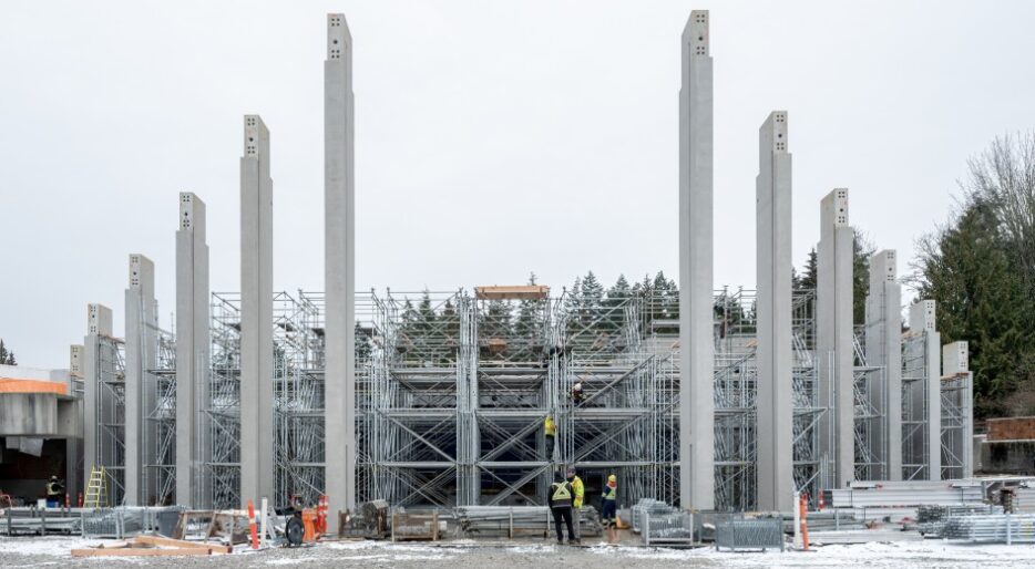 The new Great Hall also had to be dimensionally identical to the existing building, with similar precast channel beams, precast columns, and cast-in-place link beams, yet more earthquake resistant.