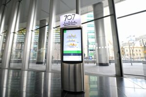 And then, says Martin, one of the most helpful services a modern digital information hub can provide is simply helping people get to and from the building: “A lot of the clients that use our digital information hubs are offering live transit feeds that help their tenants and visitors get to where they’re going. For instance, say you have someone leaving a meeting; they can hit a button on the screen and find out exactly when their next bus is coming, how close they are to other transportation hubs, or even get information for a ride-share.”