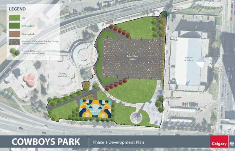 “With the Olympic Plaza Transformation underway, this work will make Cowboys Park a versatile space for Calgarians to use and enjoy, and will replenish our portfolio of accessible, flexible event spaces downtown,” says Kyle Ripley, director of parks and open spaces.