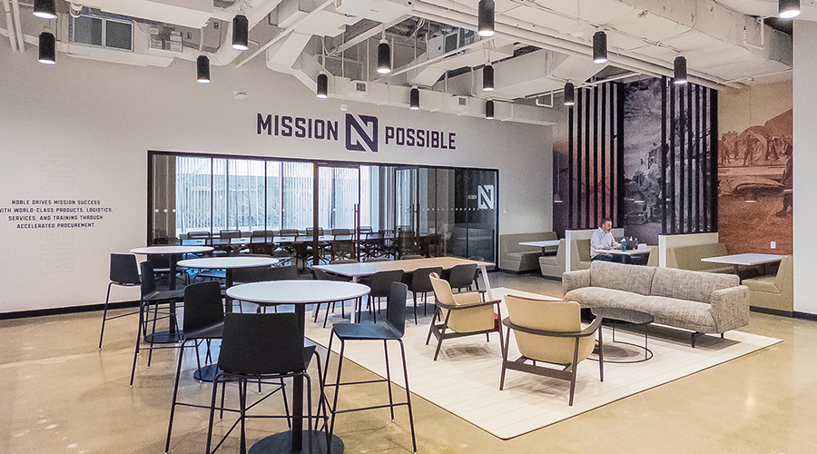 NOBLE, an acclaimed provider of global sustainment and operations support for U.S. military and civilian government agencies, wanted their new Boston headquarters to align not only with their company culture, but today’s changing workflow. The new space, designed by Dyer Brown, features fewer dedicated workstations and more collaborative and flex space.