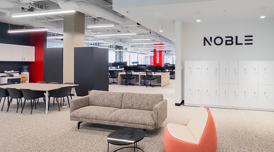 The amenity-rich setting allows employees to be comfortable and optimally productive. Throughout the workplace, Noble’s company history and legacy are revealed through showcased products, displays of artifacts, and environmental graphics.