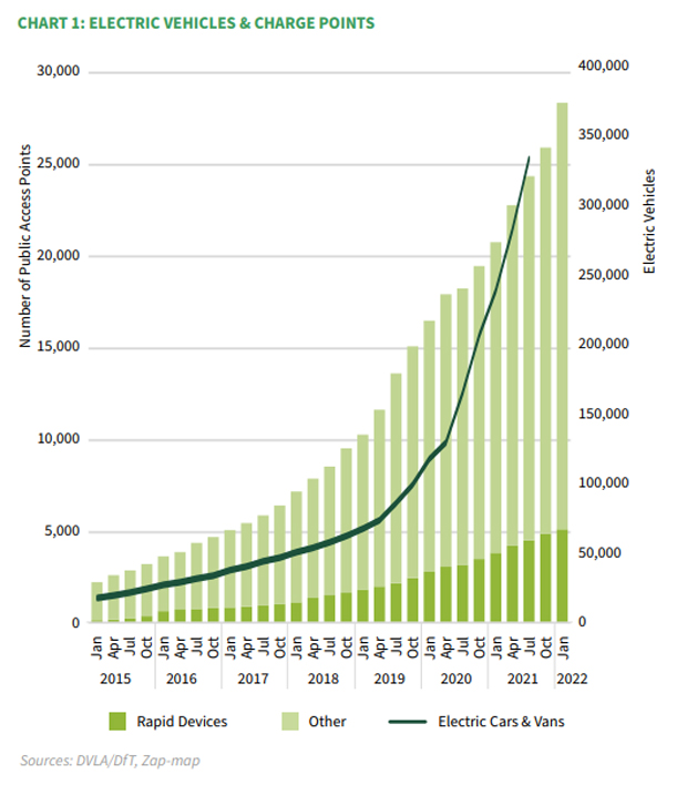 EV Infrastructure and Charging: Increasing Opportunities for Operators and Installers highlights that, despite the current shortfall in EV infrastructure, efforts are underway to address the situation. Forecasts suggest that at least 280-480,000 public charge points will be needed by 2030, more than 10 times the current number (approx. 25,000).