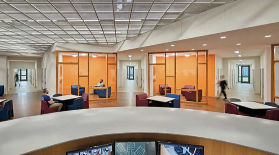 “Since the staff station is usually in a prominent location within primary living and interaction spaces, the message its design conveys to patients should not be underestimated,” says Eric Kern, behavioral health director at Page.
