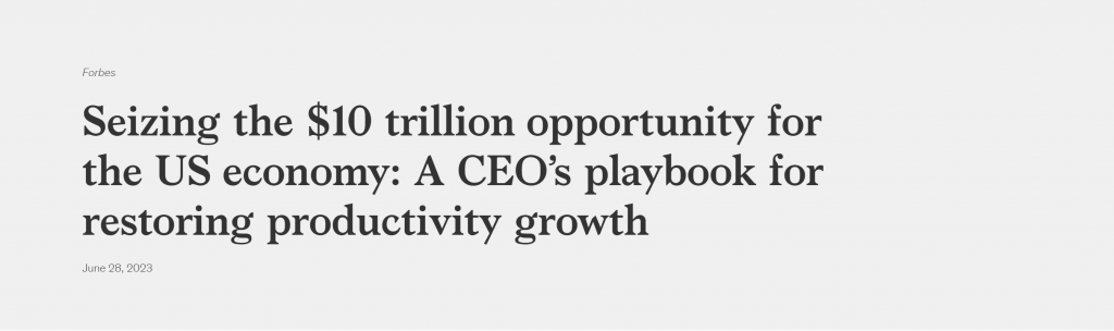 The post "Seizing the $10 trillion opportunity for the US economy: A CEO’s playbook for restoring productivity growth" appeared first on McKinsey Insights