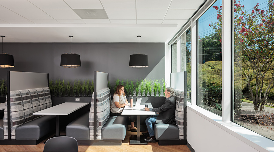 The conversations occurring in meeting rooms, counselor rooms, or hearing rooms could be sensitive in nature, and each space is consciously designed to provide a balance of comfort and safety.