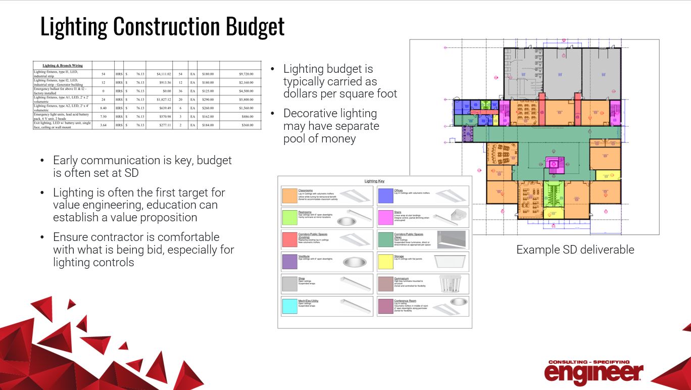The budget for lighting and lighting controls is important to set early in the design process. Courtesy: Consulting-Specifying Engineer